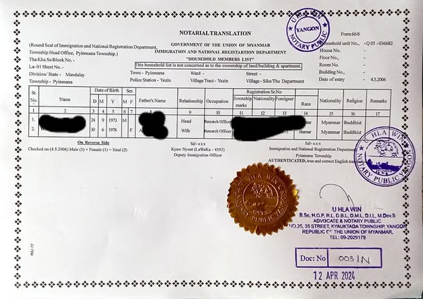 》နိုတြီဘာသာပြန်မှာ ဈေးနှုန်းချိုသာ နေ့ချင်းပြီးရနိုင်တာ Khin Notary Online Service ပါ《