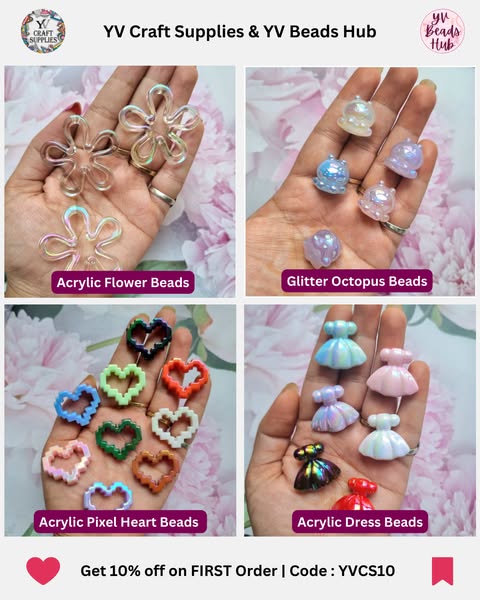 Discover high-quality beads, charms, and jewelry findings to craft one-of-a-kind designs! 💖 Shop now and enjoy exclusive benefits: ✅ FLAT 10% OFF on your first order! (Use Code: YVCS10) ✅ Earn Reward Points on every purchase & save more! ✅ Premium & Unique Beads to make your creations stand out! ✅ Fast & Reliable Shipping across India! 📿✨ Don't settle for ordinary—craft something truly unique! Shop now! 🛒