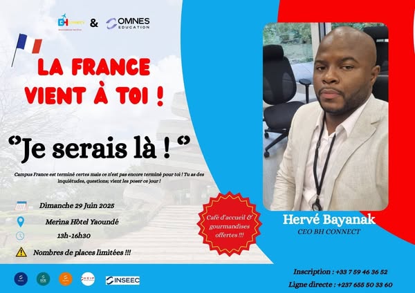 En effet le 29 juin 2025, pour la toute première fois, le Management d’OMNES Éducation sera présent au Cameroun à nos côtés, pour une séance d'information exclusive, en présence du Top Management de BH Connect.