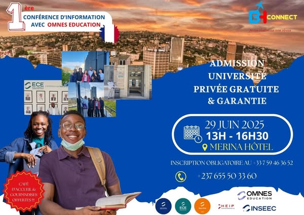 🎯 Événement Officiel – OMNES Éducation x BH Connect YAOUNDÉ – 29 JUIN | Hôtel Merina de 9h30 à 16h.