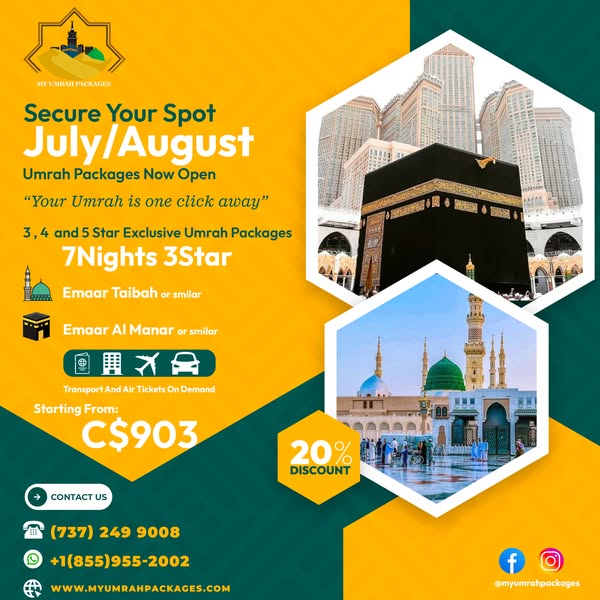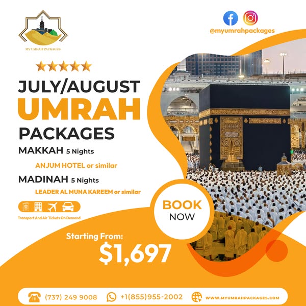 Indulge in a premium experience near the Haram. For the ultimate Umrah journey. Book your 5-Star Umrah package with My Umrah Packages today. 📲 WhatsApp: +1 855-955-2002