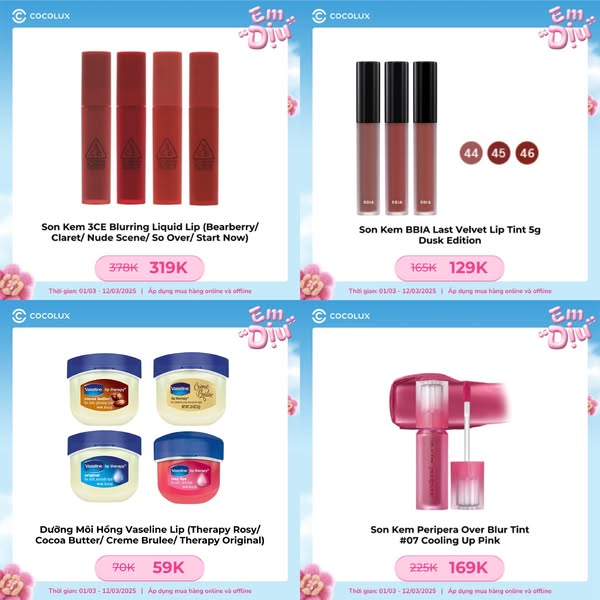 Lan toả nét “DỊU” cho hơn 1 triệu khách hàng vào 8/3 này. Cocolux mang đến trăm DEAL “dịu dàng” cho nàng “dịu keo” với các SIÊU PHẨM make-up “dịu da”, skincare “dịu nhẹ”, bodycare “dịu mềm”,... từ +50 nhãn hàng nổi tiếng.