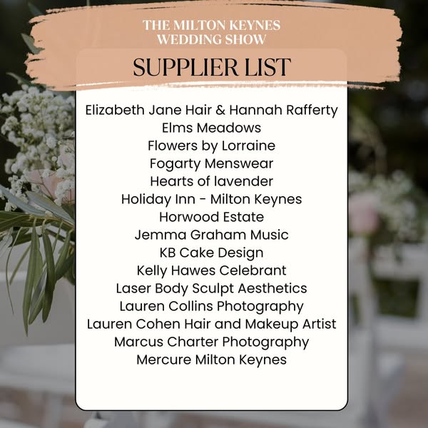 搜索关键词 wedding show, milton keynes, wedding suppliers, free entry, wedding fair, doubletree hilton, 2nd march, family friendly, wedding planning, eventbrite tickets优势 Free Entry,Around 80 Suppliers,Family Friendly,Ultimate wedding supplier list