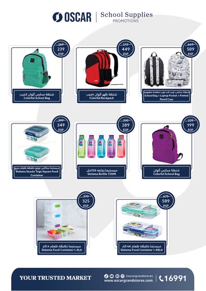 搜索关键词 school supplies discount, oscar grand stores, back to school essentials, lunch boxes backpacks, egypt school offer, oscar stores app, nutritious snacks, stress free school, september sale, school season优势 Wide range of school supplies available,Discounts on essential items,Multiple branches and online options