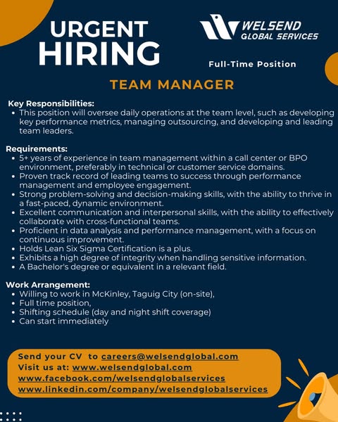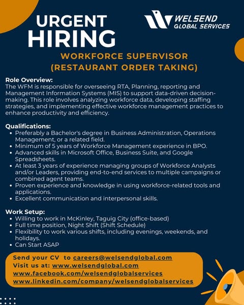#TheWelsendGroup #Welsend #WelsendGlobalServices #ITBPO #BPO #BusinesProcessOutsourcing #Wansheng #CallCenter #JobHiring2025 #Manila #Philippines #China #OutsourcingServices #IT #Telecom #Recruitment #Success #Learning #Passion #Growth #CustomerService #CSR #InternationalAccount #2025hiring #manilahiring #jobhiring2025