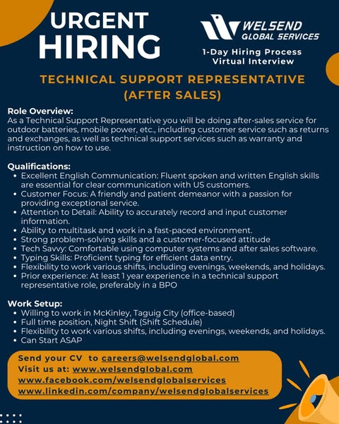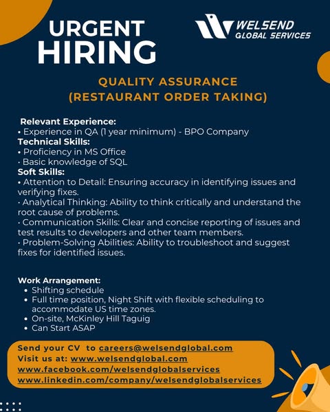 搜索关键词 IT BPO Services, Call Center Jobs, Business Process Outsourcing, Welsend Global Careers, Job Hiring 2025, Manila Philippines Jobs, International Account CSR, Outsourcing Recruitment, Welsend IT, Telecom jobs优势 Growing Team,International Account Opportunities,Learning and Growth Potential
