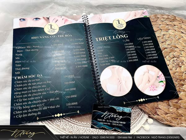 搜索关键词 plastic menu printing, restaurant menu design, spa menu design, custom menu book, waterproof menus, fast menu printing, Ngô Trang printing, menu design services, beauty salon menu, menu printing Vietnam优势 Durable, waterproof, scratch-resistant plastic menus,Customizable design to fit any business,Fast turnaround, same-day service available,Nationwide delivery,Competitive pricing with volume discounts,Excellent customer support and after-sales service