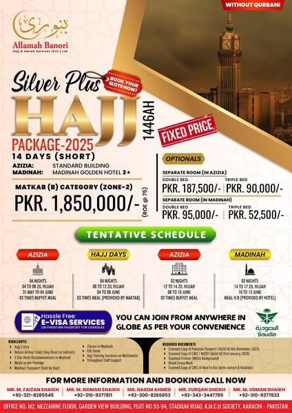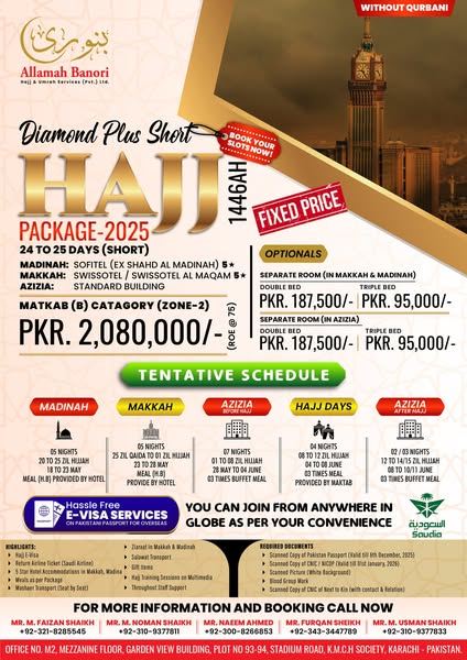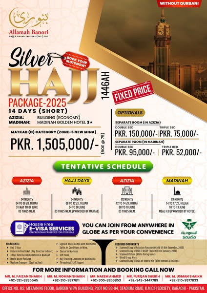 #Hajj2025 #AllamahBanori #hajjpackages #hajjandumrah #HajjPreparation #hajj #Makkah #Medina #BlessedJourney #HajjExperience #PlanYourHajj #BookNow