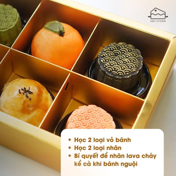 搜索关键词 lava mooncake, baking class, cooking class, Vietnamese cuisine, mooncake recipe, Kadi Kitchen, baking course, learn to bake, mooncake business, mooncake making优势 Learn to make lava mooncakes.,Perfected recipe for business.,Learn to make both baked and flaky crusts.,Learn various shaping techniques.,Cost calculation and efficient production tips.,Solve leakage problem when baking