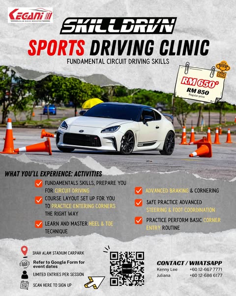 SPORTS DRIVING = RM 850 / Early Bird RM 650 (1 week before event)