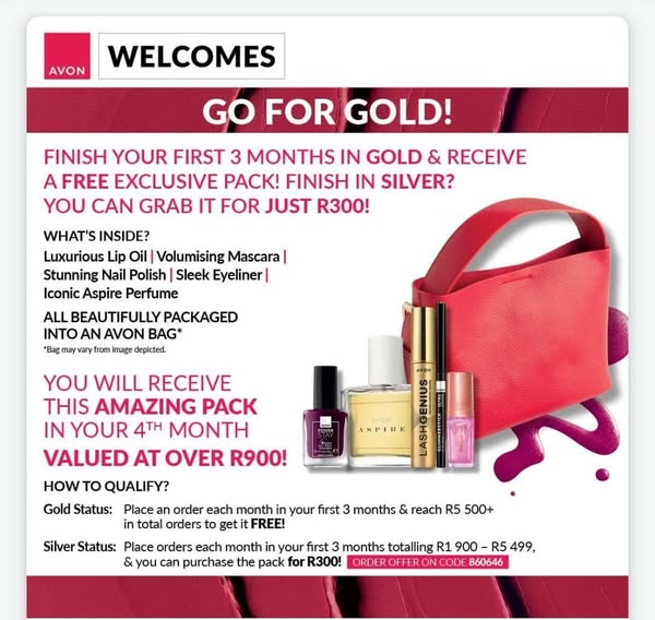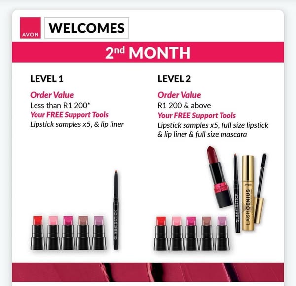 搜索关键词 avon business, start business, earn money, direct sales, free gifts, cosmetics opportunity, discount products, low investment, home based business, become representative优势 Earn 18%-35% commission,20% discount in the first month,Free Gifts for the first 4 months,Low initial investment (R700 or $38)