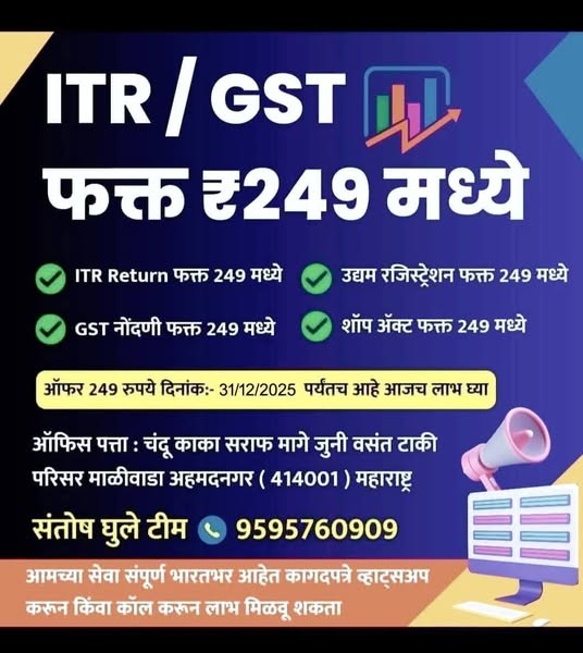अधिक माहिती साठी 9595760909 या नंबर ला whatsapp करा hi मेसेज करा taxmarathi नावाने नंबर सेव करा आणि