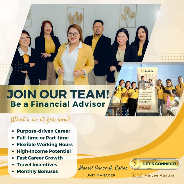 Sun Life Philippines is currently looking for Financial Advisors to join our team!