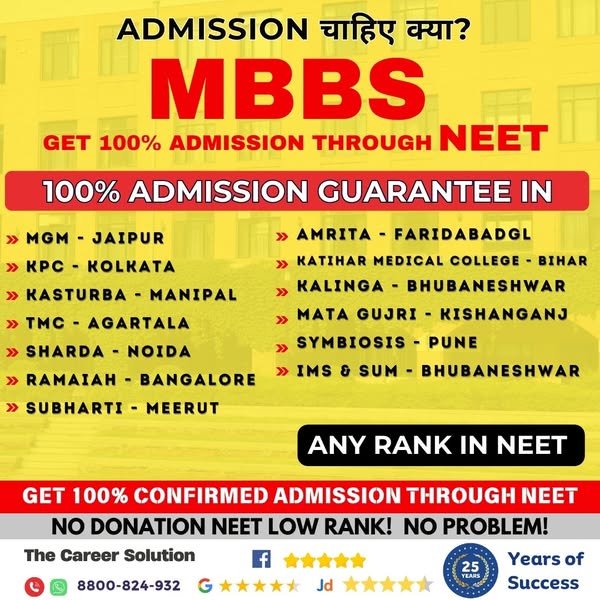 Becoming a doctor is closer than you think! We guarantee your MBBS admission in the top private medical colleges across India. No more waiting, no more uncertainty—just a clear path to your dream career. ✅ Guaranteed seat in leading colleges ✅ Trusted & proven success record 📞 Call now for more info and start your medical journey TODAY!