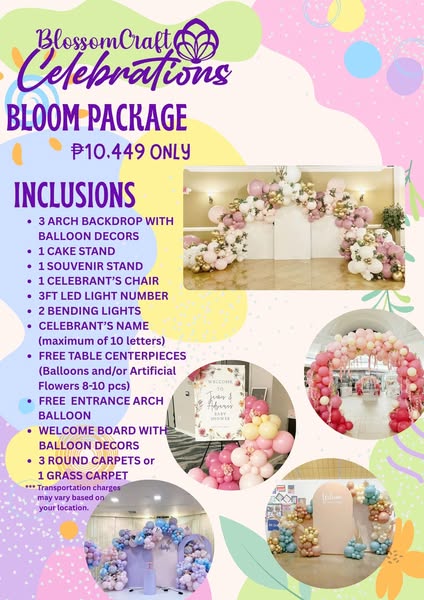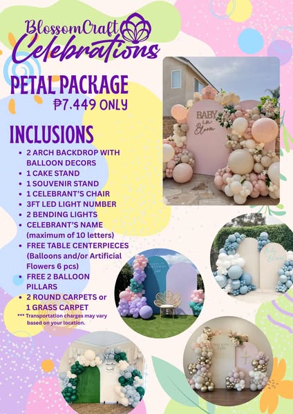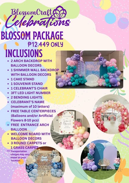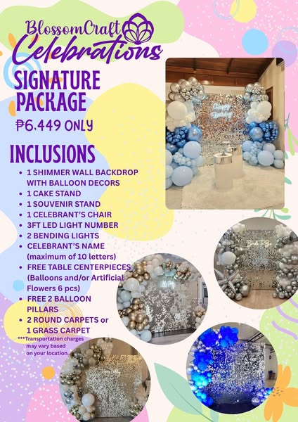 搜索关键词 event styling, event decoration, birthday decor, wedding styling, balloon decor, BlossomCraft Celebration, event packages, shimmer wall, party styling, Philippines events优势 Variety of packages to suit different budgets,Customizable styling options,Focus on creating visually appealing and Instagrammable events