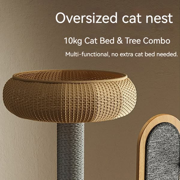 ✅ Oversized Woven Nest – A plush, 10kg-capacity bed that doubles as a cozy lookout spot. No need for extra cat beds—this combo does it all!