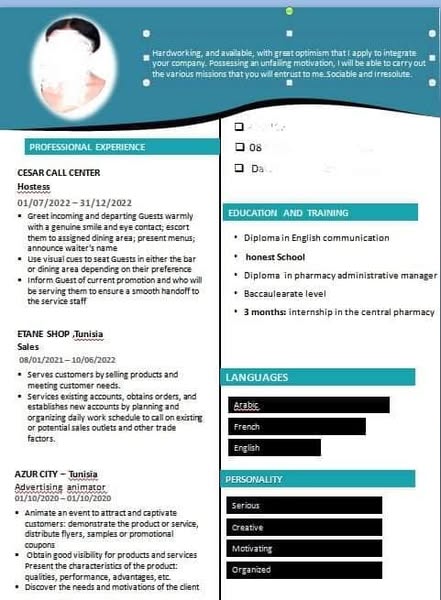 تحب على🇨🇵🇬🇧 CV anglais, français,allemand,italien ....