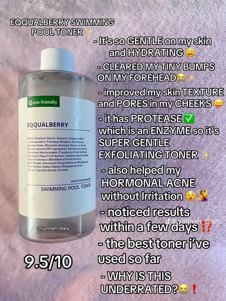 搜索关键词 eqqualberry toner, swimming pool toner, natural exfoliation, fungal acne safe, skin texture improvement,deep hydration, berry complex extract, preorder cosmetics, beauty toner, skincare product优势 Improves skin texture and tone,Natural Exfoliation Effect,Deep Hydration,Fungal Acne Safe,Contains 5 berry complex extract