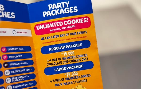 搜索关键词 unlimited cookies, party cart, catering services, cookie catering, event planner, party planner philippines, best party treat, CBTB party, fresh baked cookies, affordable catering优势 Unlimited Cookies,Freshly Baked,Affordable Price (₱8,500),Makes you the favorite guest