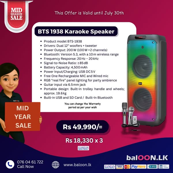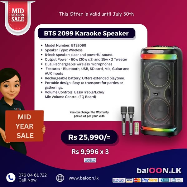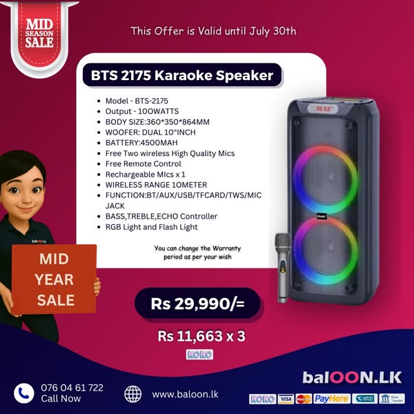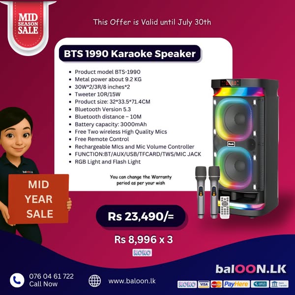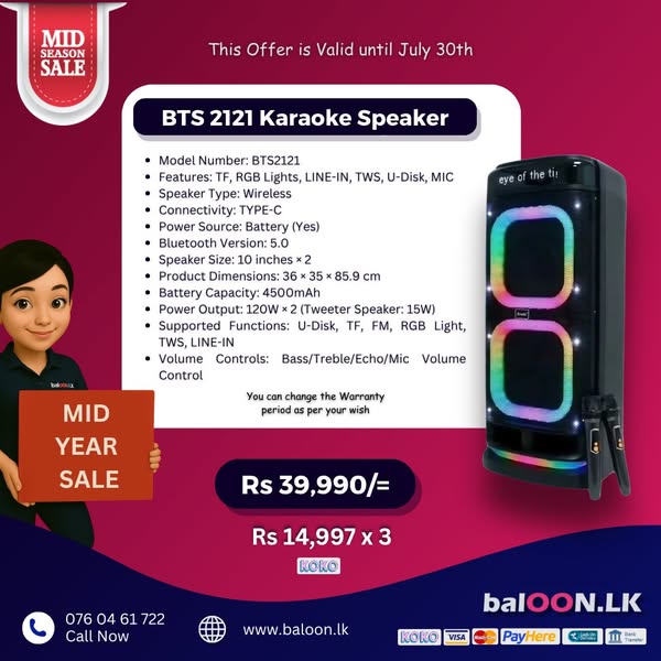 搜索关键词 party box, bluetooth speaker, audio equipment, branded speaker, speaker sale, Sri Lanka, Mid Year Offer, speaker repair, galawilawatta homagama, party audio优势 Wide Selection (100+ types),Branded Options (JBL, Hopestar, etc.),Comparison and Selection Assistance,Sample Checking Available,Home Delivery,Repair Service,Competitive Pricing
