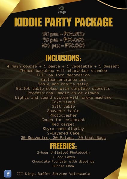 搜索关键词 catering services, party packages, event catering, discounted catering, philippines catering, kare kare catering, affordable catering, wedding catering, birthday catering, IIIKings catering优势 Significant discount (at least 50%),Free Grazing table (All In Package),Free Kare-Kare dish (good for 50 pax),Free 10 pax Buffer,Additional 10% discount for early booking