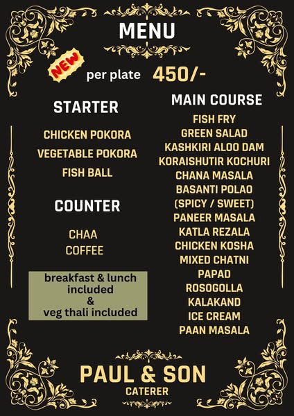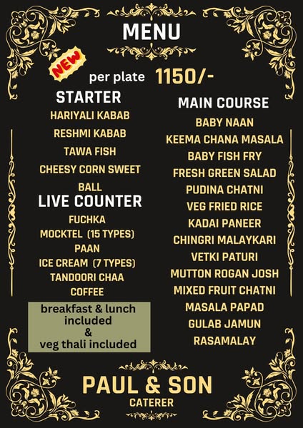 Looking for affordable and mouthwatering catering? Look no further! PAUL and SON Caterer offers the BEST prices in the market without compromising on taste or quality.