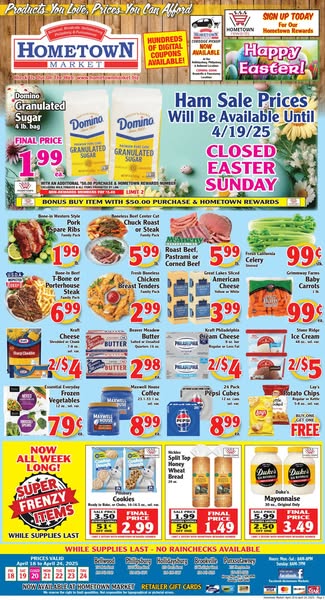 搜索关键词 Easter deals, grocery savings, Hometown Market, ham sale, curbside pickup, rewards program, weekly ad, Easter Sunday, family feast, grocery delivery优势 Easter Savings,Weekly Flyer with Deals,Curbside Pickup,Hometown Rewards Program