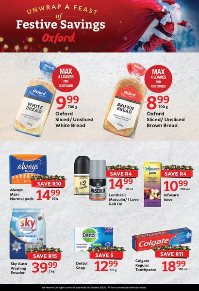 搜索关键词 oxford fresh market, tuesday sale, holiday deals, grocery discounts, pensioner discount, meat and produce, grocery shopping, weekly special, limited time offer, south africa优势 Discounted prices on Tuesdays,Holiday-themed promotion,Pensioner discount