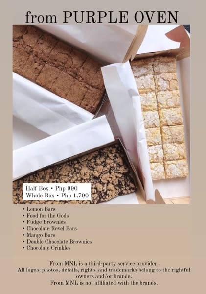 搜索关键词 Manila Bacolod delivery, Pasabuy service, Food delivery service, Holiday pastries Bacolod, Gift shopping service, Manila products Bacolod, Bacolod doorstep delivery, fast shipping service, Fresh food delivery, customize your own bundle优势 Ships from Manila to Bacolod,Arranges delivery to your doorstep,Offers holiday-themed pastries,Free delivery with minimum purchase,Offers personal/gift shopping services,Guarantees freshness and quality,Customized promo bundles,Fast overnight shipping,No hidden charges