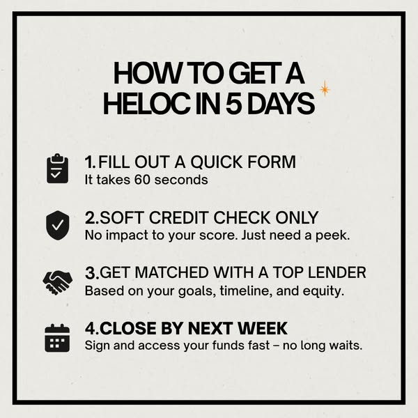 We’ve simplified the process. No drawn-out paperwork or delays — just a fast, flexible HELOC that puts your equity to work in record time.