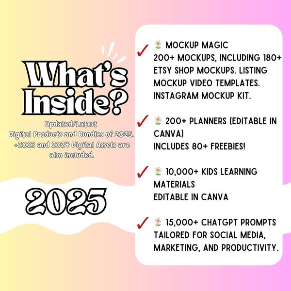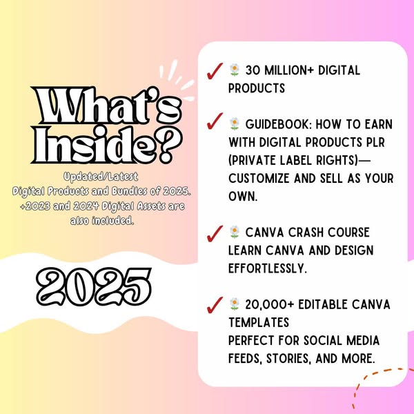 搜索关键词 digital products bundle, plr guidebook, canva templates, reels bundle, chatgpt prompts, midjourney prompts, earn online, tiktok content, social media marketing, ebooks collection优势 Massive collection of digital products,Includes PLR (Private Label Rights),Ready-to-use templates and prompts,Suitable for various platforms like TikTok,Affordable flash sale price for a limited time.
