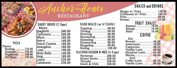 Anchor Home Carwash & Cafe offers food in BILAO. PM niho lang ako or tawag sa 09957419032.