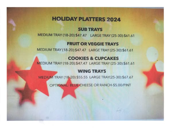 Christmas is almost upon us. Call today to reserve your Christmas Dinner or Christmas Party Trays. 850 674 5044 and ask for the deli. You should enjoy your holidays, let us do the work! Thank you and have a Merry Christmas!