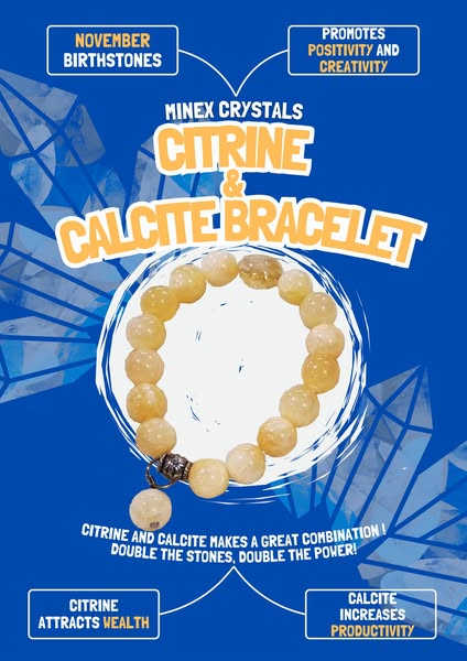 Citrine and Yellow Calcite make a great combination to wear. Citrine is known as the “Merchant’s Stone” and is reputed to help in acquiring wealth. It stimulates creativity, brings happiness, and can influence success in education and business pursuits. Additionally, it serves as a good luck charm in business and career endeavors.