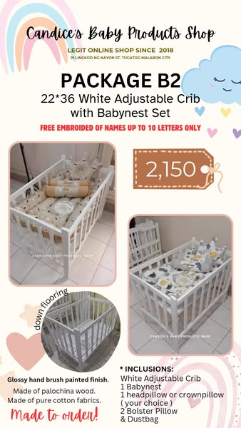 搜索关键词 baby crib packages, affordable baby beddings, hand-made baby crib, Philippines baby products, mall quality baby crib, baby furniture sets, custom baby bedding, baby room decor, Metro Manila baby shop, discounted baby items优势 Lowest Price,Mall Quality,Hand-made with Love,Budget Friendly