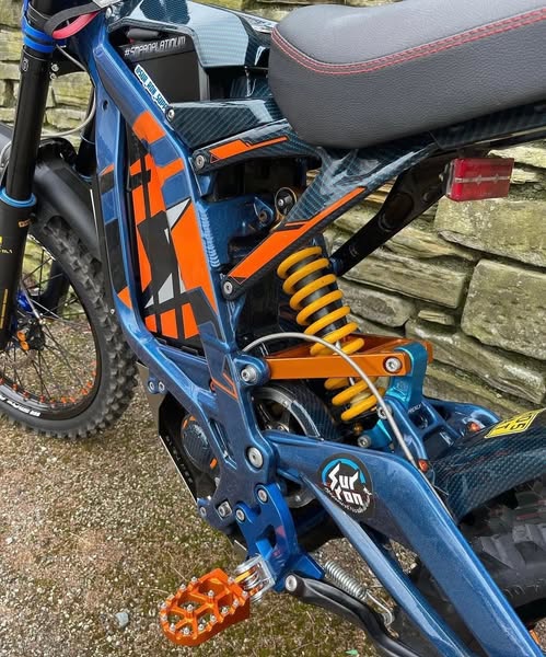 搜索关键词 sur ron electric bike, custom ebike, modified surron, 72v ebike, off road electric bike, arizona ebike, performance electric bike, surron upgrades, electric dirt bike, surron for sale优势 Extensive Upgrades and Customization,High Performance 72v Battery System,Premium Suspension and Braking Components,Waterproofed and Protected,Unique Aesthetic Design with Custom Colors and Carbon Dipping