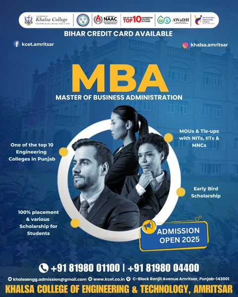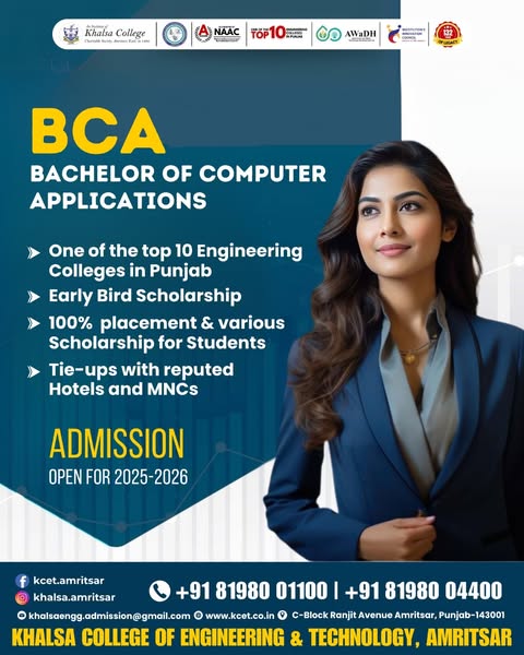 Join one of Punjab’s most prestigious institutions! Explore UG & PG courses in Arts, Science, Commerce, IT, and more. World-class faculty, modern infrastructure, and a legacy of academic brilliance. Apply now and build a successful future with Khalsa College.
