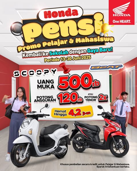 🥇Dapatkan motor Honda pilihanmu dan nikmati pengalaman berkendara yang lebih nyaman dan hemat. Stok terbatas, jadi jangan sampai kehabisan😊
