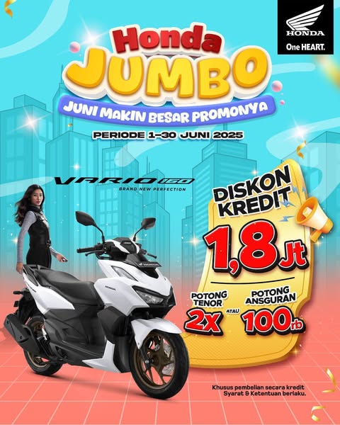搜索关键词 honda motorcycle, credit promo, low dp, indonesia motorcycles, mojokerto honda, vario 125, beat series, new scoopy, vario 160, new pcx 160优势 Low Down Payment (Mulai 100 Ribu),Special Prices,Additional Bonuses,Satisfactory Guarantee,Advanced Technology,Best Fuel Efficiency,Stylish Design,Safe and Comfortable,Affordable and Easy Service,Free Service 1 Year + Oil 1x,Guaranteed,Extra Cashback,Installment Discounts,Attractive Accessories,Cash Discounts up to Millions Rupiah,Fast and Trustworthy Process