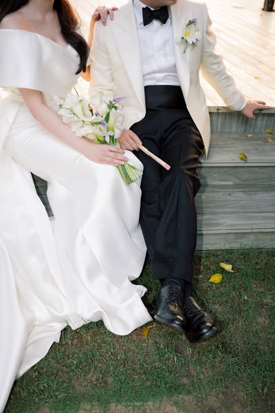 Beneath the sprawling branches of an ancient tree at the picturesque An Lam Retreat by the river, Du and Long celebrated their love in an enchanting wedding ceremony. The air was filled with the sweet fragrances of blooming flowers, arranged meticulously around the couple, creating a vibrant tapestry of colors that complemented the natural beauty of the riverside.