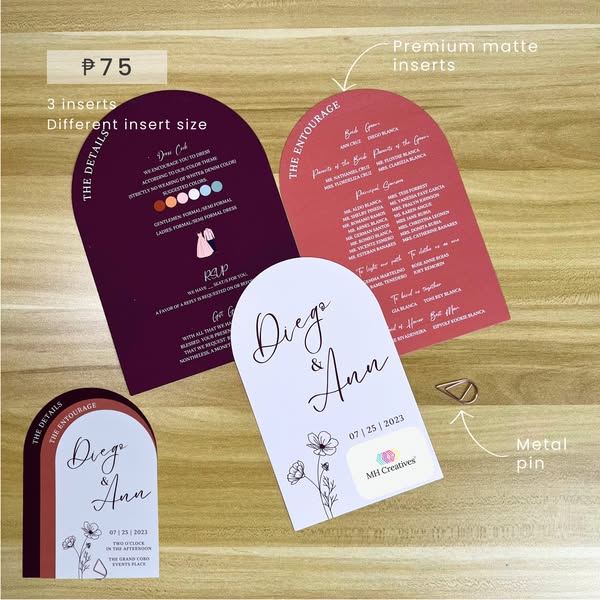 搜索关键词 wedding invitations, birthday invitations, event souvenirs, party favors, custom invitations, affordable invitations, MH Creatives, special events, christening invitations, debut invitations优势 Free Layout,Includes Envelope and Seal,Available for Various Events,COD Payment Accepted,Rush Orders Accepted