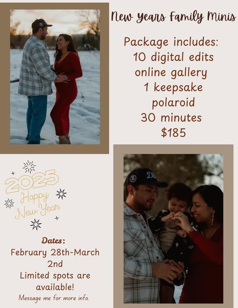 👉 Reserve your session today, retainer due at booking and start 2025 with beautiful memories that last a lifetime!