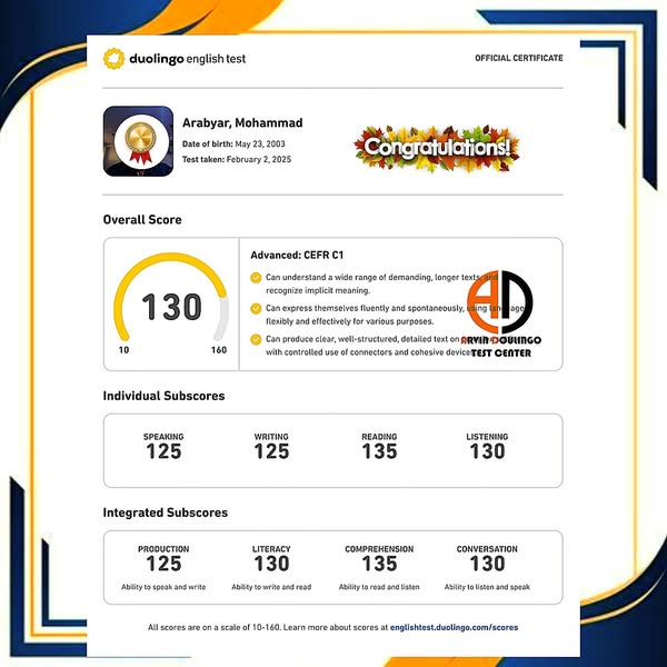 🔸️ سپری کردن امتحان دولینگو( DuolingoTest) با تیم متخصص آروین با تغییرات جدید در امتحان دولینگو با (100%) ضمانت.