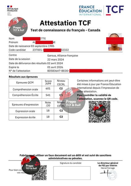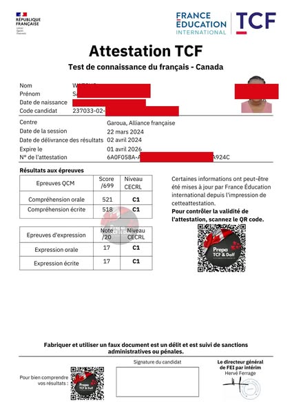 Session de : Mi et Fin d’année 2024 à GAROUA & DOUALA ( TCF & TEF ) Que des C1 et C2 ✅♻️
