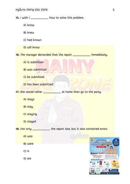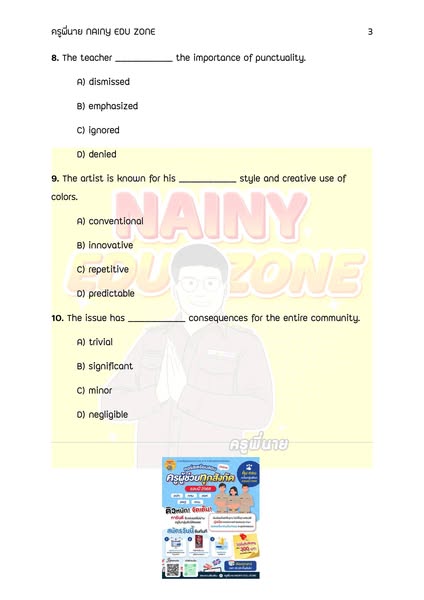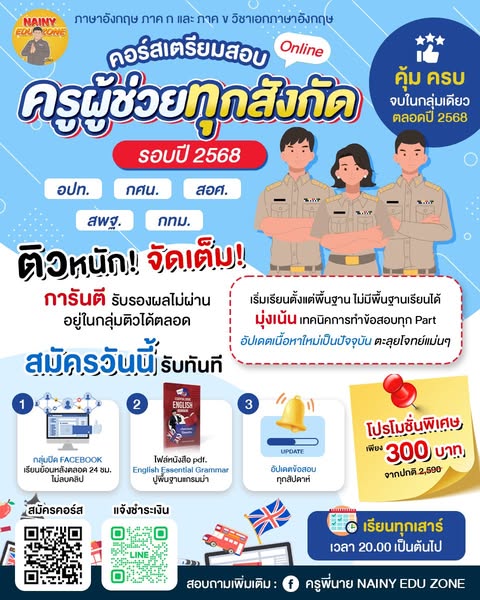 搜索关键词 Teacher assistant exam, english exam prep, education course, thai teacher exam, NAINY EDU ZONE, teacher preparation, civil servant exam, ครูผู้ช่วยกรณีทั่วไป, ภาคกภาษาอังกฤษ, ข้อสอบครูผู้ช่วย优势 Comprehensive content,Updated exam questions,Test-taking techniques,Easy to understand instruction