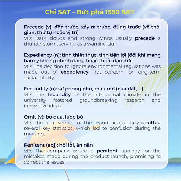 Chi đã tổng hợp danh sách những từ vựng khó xuất hiện trong kỳ thi DSAT tháng 5/2025 vừa rồi 📝 Hy vọng danh sách này sẽ giúp các em ôn tập hiệu quả hơn cho các kỳ DSAT sắp tới nhé! 💪🥰