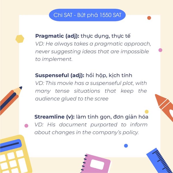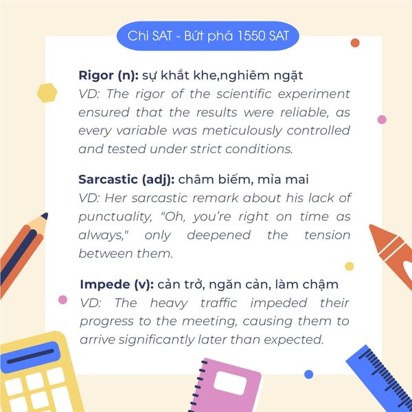 Cùng Chi tham khảo list từ khó trong kỳ thi DSAT tháng 3/2025 vừa qua nhé 🥳 Mong là list từ này sẽ giúp các em chuẩn bị tốt hơn cho các kỳ thi DSAT tiếp theo 🥰