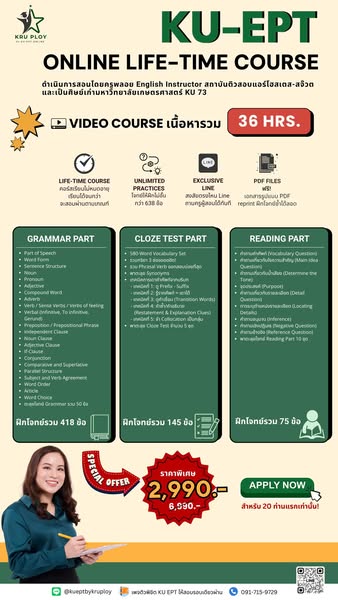 #KUEPT #KUEPTPreparation #KUEPTCommunity #ติวkuept #สอบKU #สอบเข้าปริญญาโท #ติวKUEPTฟรี #สอบKU_EPTรอบเดียวผ่าน #ติวอังกฤษออนไลน์ #สอบเข้ามหาลัยKU #ติวGrammar