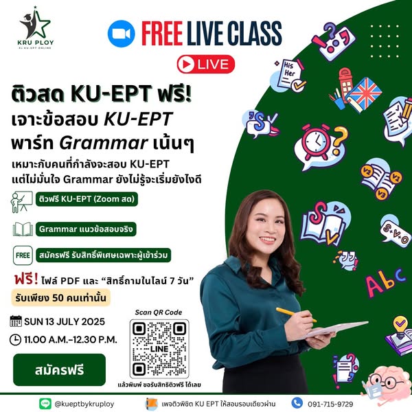 📌 Live Class: เจาะข้อสอบ Grammar KU-EPT แบบจัดเต็ม