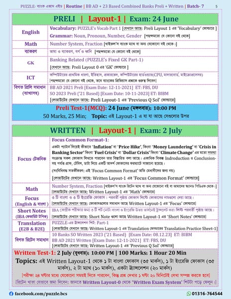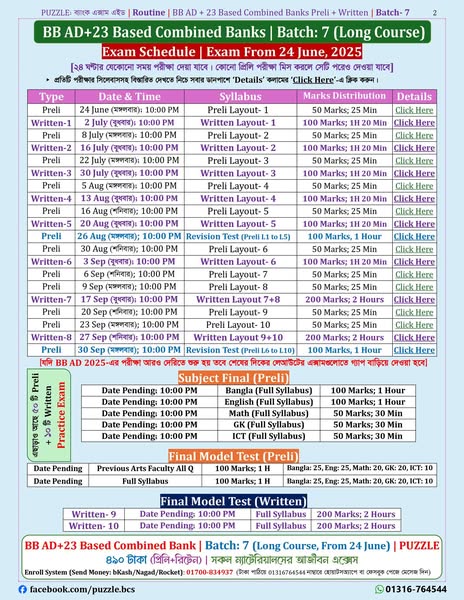 ২৩ ভিত্তিক সিনিয়র অফিসার কিংবা বিবি এডি--সবকিছুর জন্যই পারফেক্ট ব্যাচ হলো PUZZLE-এর প্রিলি+রিটেন ব্যাচ ৭। পাশাপাশি এই ব্যাচে ২২ ভিত্তিকের OG-এর জন্য প্রিলি প্র্যাকটিস এক্সাম দেয়ার সুযোগও আছে। এই ব্যাচে মূল পরীক্ষা শুরু ২৪ জুন থেকে।